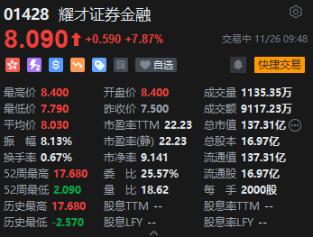 11月26日音信开云kaiyun.com,此前一度因蚂蚁展期收购大跌的耀才证券金融,当天因展期收购技巧细目高潮。盘月朔度大涨12%报8.4港元,现在涨幅收窄至8%以内。